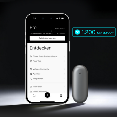 - Kaufe 1 und erhalte 3 Geschenke gratis: Magnetischer Pin & Clip & 300 Min./Monat KI-Transkription.