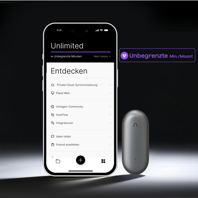 - Dual-Modus-Aufnahme: Wechsel zwischen den Modi für Telefonanrufe und persönliche Treffen.