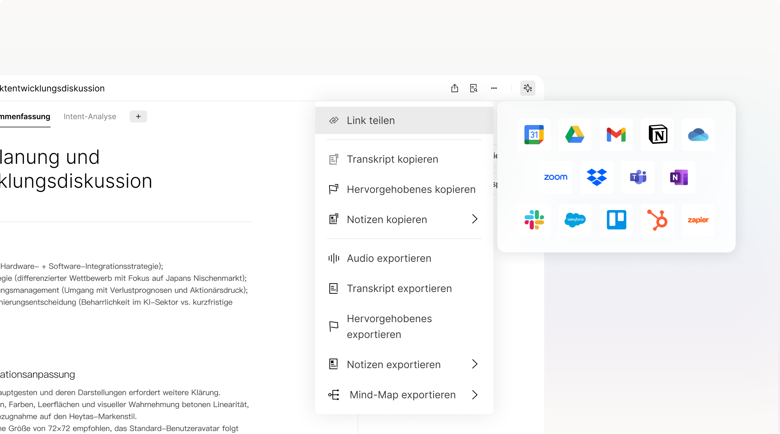 Teile oder exportiere Erkenntnisse ganz einfach mit deinem Team