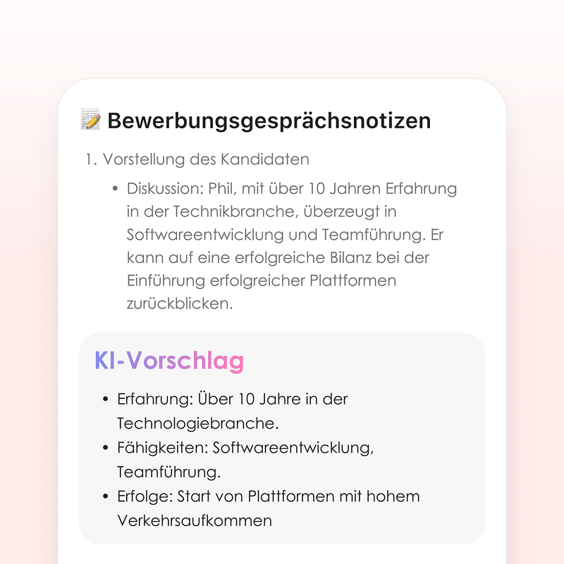 Bleibe in jedem Gespräch vollständig präsent, während Plaud Note professionell formatierte Interview-Notizen und wichtige Erkenntnisse liefert.