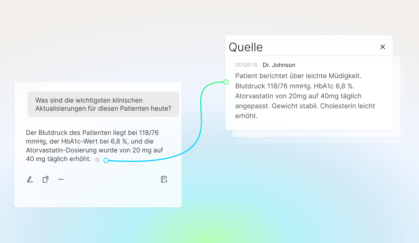 Fange Testergebnisse, Berichte oder Scans mit einem Handgriff ein. Visuelle Daten werden automatisch mit deinen Notizen abgeglichen, sodass eine einheitliche Patientenakte erstellt wird.