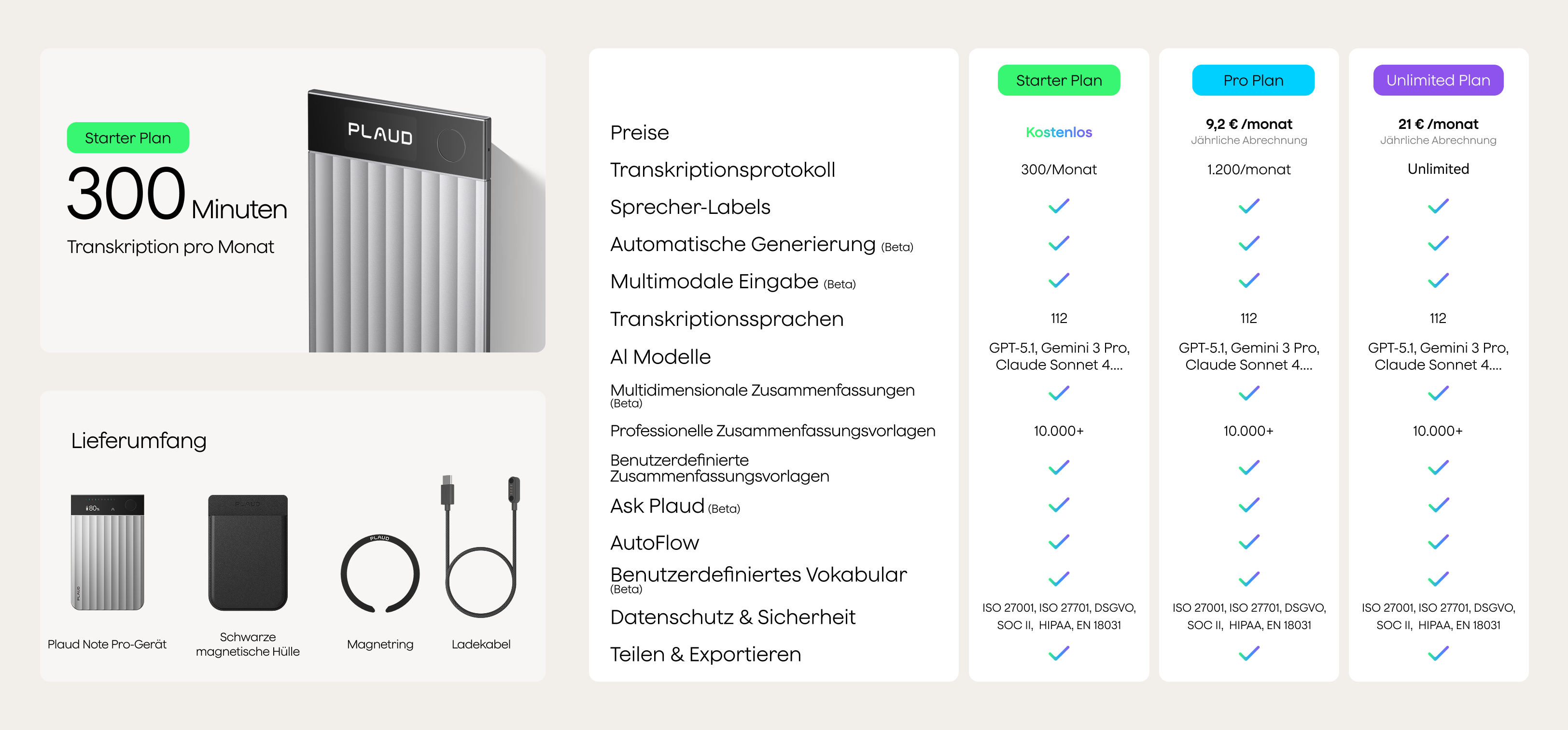 Brauchst du noch mehr? Upgrade jederzeit auf den Pro Plan oder Unlimited Plan für erweiterte Transkriptionsminuten.
